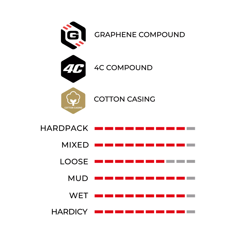 Gum infused with graphene in a gradual combination of four compounds. Rolling resistance reduced to a minimum and incisive reactivity in the central strip, high grip and anchoring stability on the shoulder, with reinforcement against the side cuts.